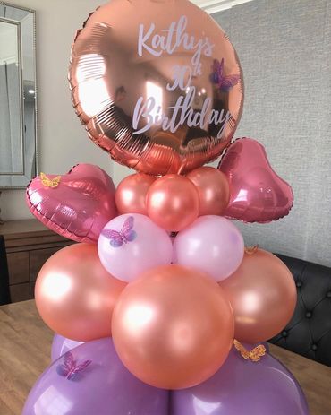 Number foil balloon on a 3 tier bouquet with a personalised name.